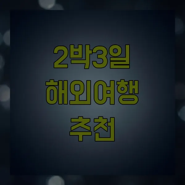 2박 3일 해외여행은 짧은 시간을 효율적으로 활용하여 새로운 경험과 추억을 만들기에 더없이 좋은 기회랍니다. 오늘 소개해 드린 여행지들을 참고하여 여러분만의 특별한 짧은 휴가를 계획해 보시는 것은 어떨까요?