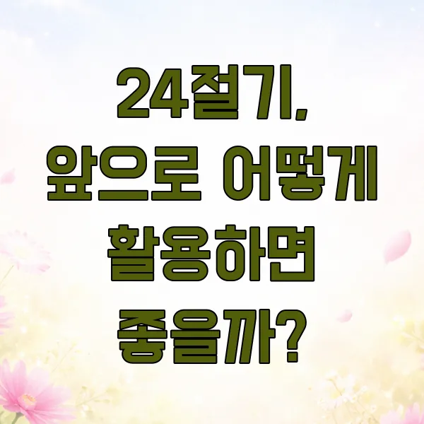 24절기, 앞으로 어떻게 활용하면 좋을까?